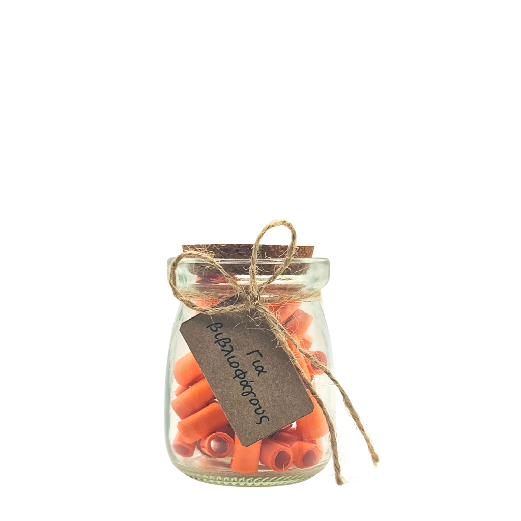 Το βαζάκι είναι αυστηρά «Για βιβλιοφάγους» και περιλαμβάνει 60/100 παπυράκια με μοναδικά ρητά και εμπνευσμένα αποσπάσματα από ανθρώπους των επιστημών, των γραμμάτων και των τεχνών.